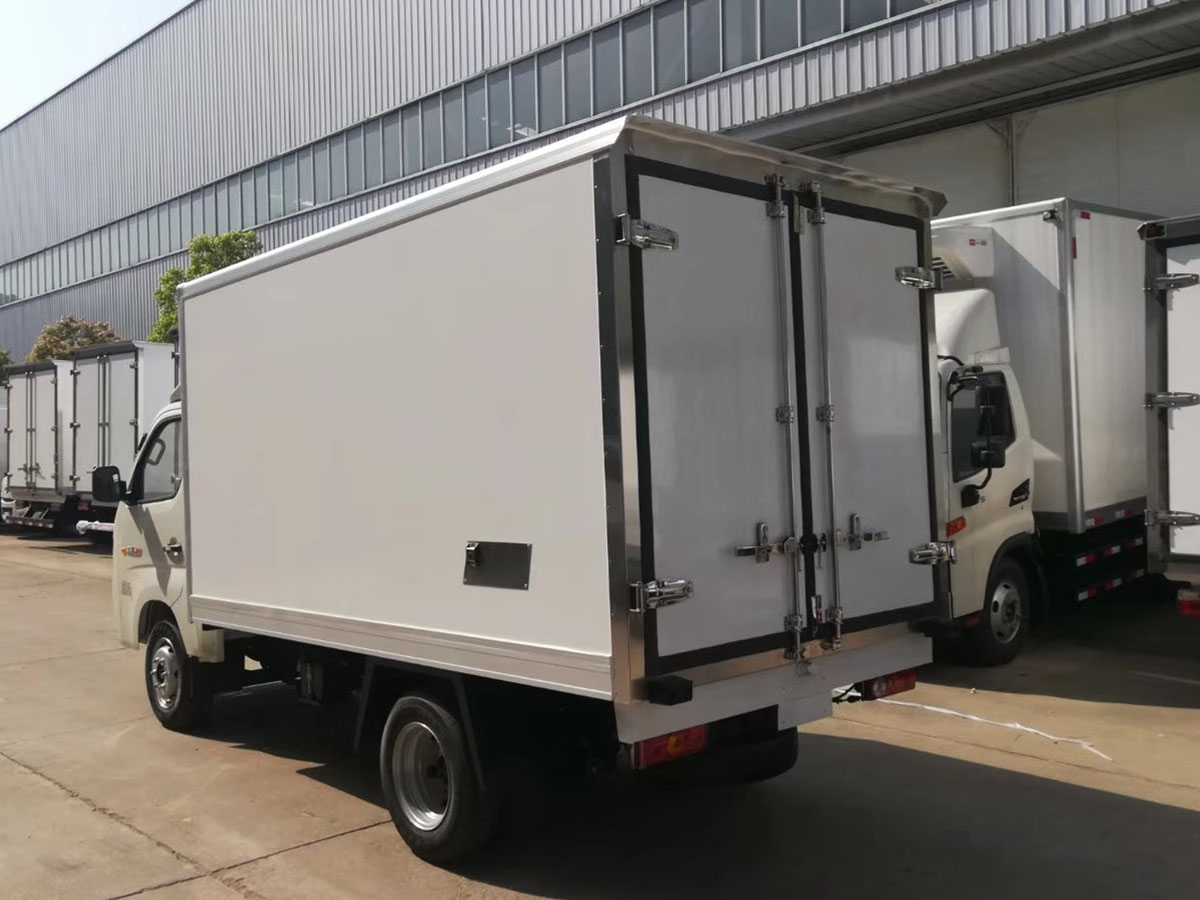 (2)廂板材質(zhì):內(nèi)外壁板選用國內(nèi)優(yōu)質(zhì)玻璃鋼(不吸光、隔熱性好、硬度強、抗氧化);中間保溫層為XPS擠塑聚笨板或聚氨酯;廂體厚度8CM。地板采用鋁花紋板,門邊條采用迷宮式橡膠密封條。