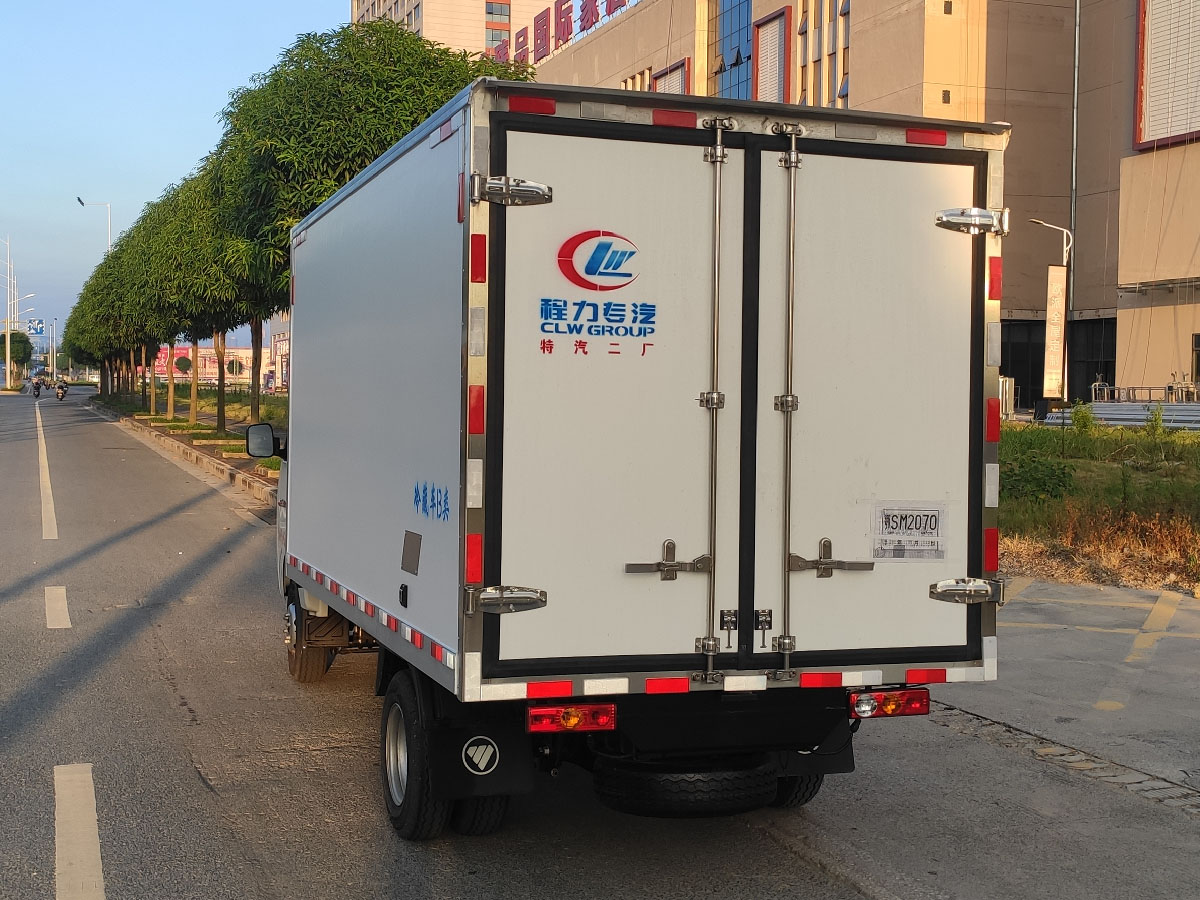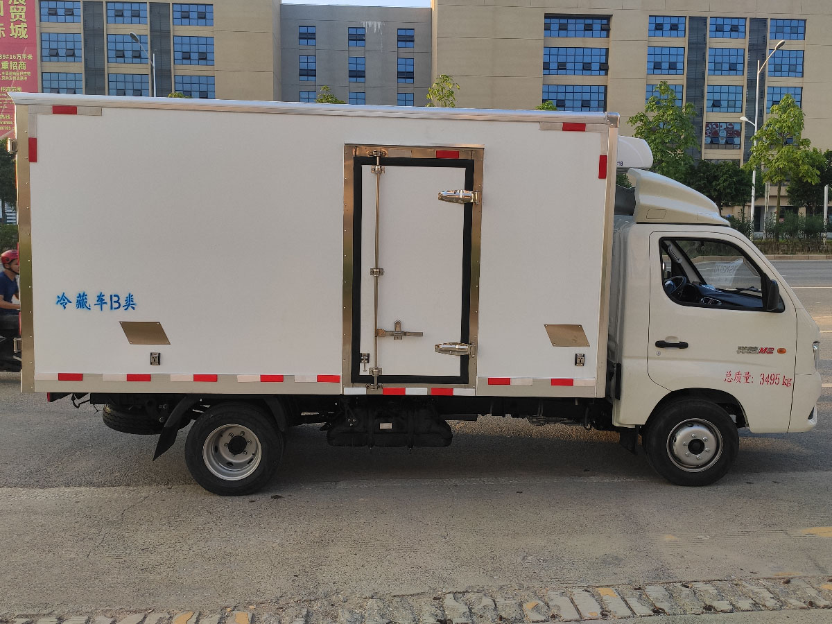 (2)廂板材質:內外壁板選用國內優質玻璃鋼(不吸光、隔熱性好、硬度強、抗氧化);中間保溫層為XPS擠塑聚笨板或聚氨酯;廂體厚度8CM。地板采用鋁花紋板,門邊條采用迷宮式橡膠密封條。