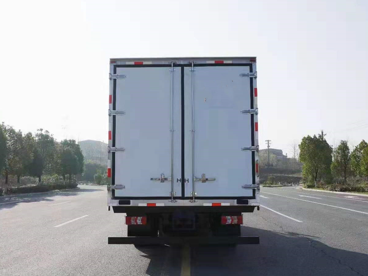 (2)廂板材質(zhì):內(nèi)外壁板選用國內(nèi)優(yōu)質(zhì)玻璃鋼(不吸光、隔熱性好、硬度強(qiáng)、抗氧化);中間保溫層為XPS擠塑聚笨板;廂體厚度8CM。地板采用鋁花紋板,門邊條采用迷宮式橡膠密封條。