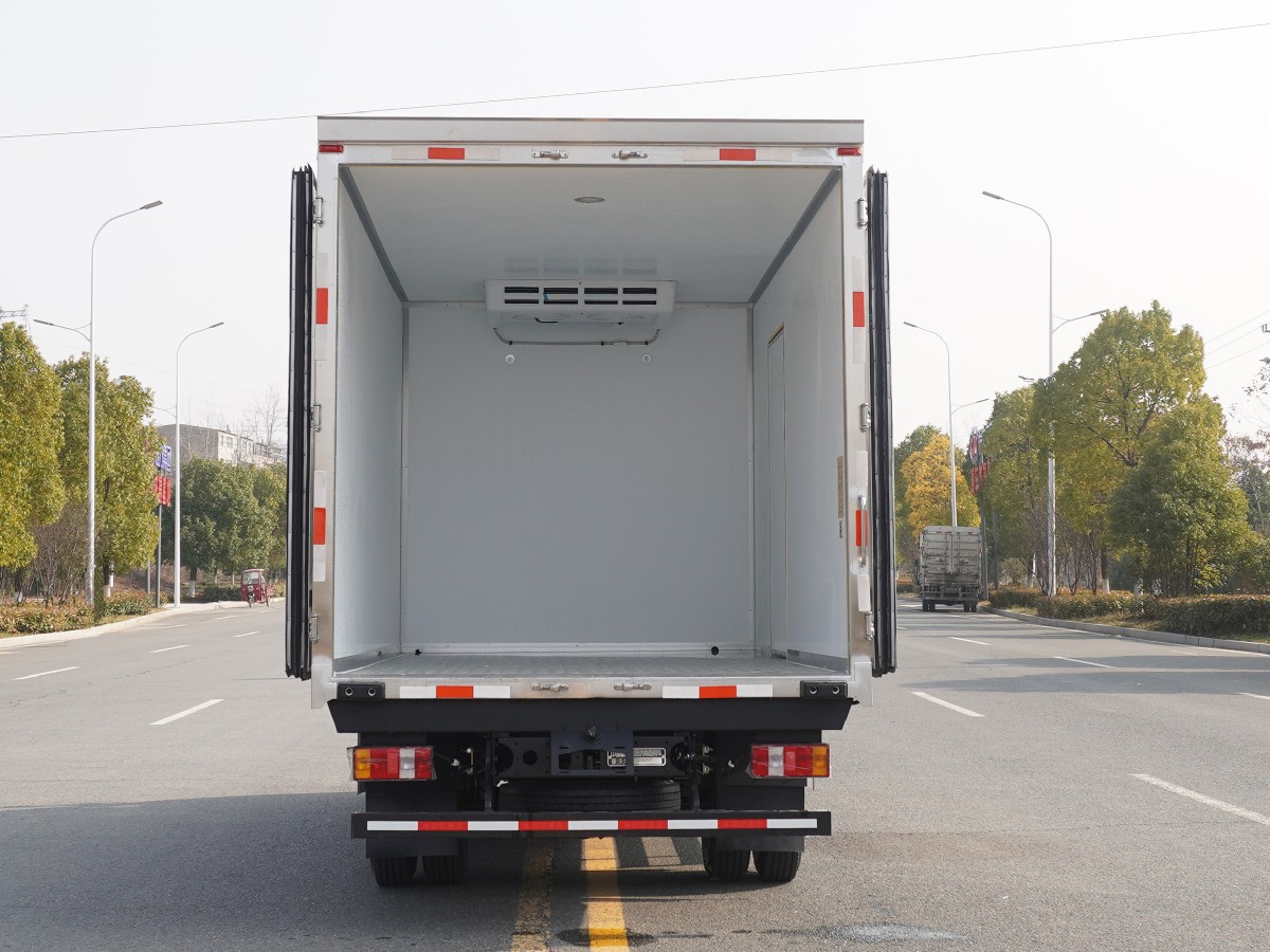 (2)廂板材質:內外壁板選用國內優質玻璃鋼(不吸光、隔熱性好、硬度強、抗氧化);中間保溫層為XPS擠塑聚笨板或聚氨酯;廂體厚度8CM。地板采用鋁花紋板,門邊條采用迷宮式橡膠密封條。