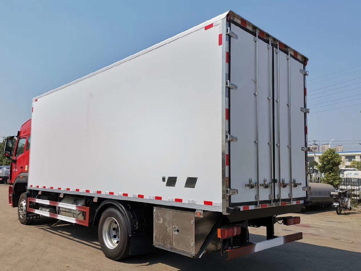 (2)廂板材質:內外壁板選用國內優質玻璃鋼(不吸光、隔熱性好、硬度強、抗氧化);中間保溫層為XPS擠塑聚笨板;廂體厚度8CM。地板采用鋁花紋板,門邊條采用迷宮式橡膠密封條。