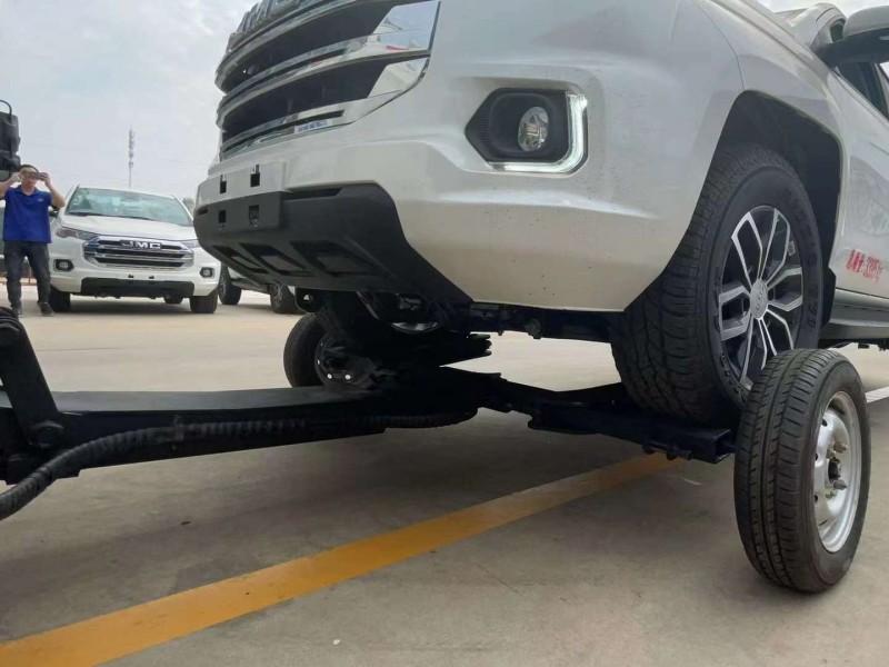 該車法定托舉質量為1T,最大拖牽質量為1.8T,該車使用新款專利產品輔助輪,使該車由托舉升級為拖牽,大大提高清障車作業效率,電動液壓單元的極限承壓3噸,請謹慎使用。