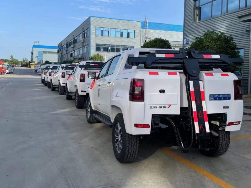 放下被拖車輛時,請降下托臀至后車完全落地后,再將抱胎放開收回,否則易導致油缸彎曲損壞! 最后將第3步中裝卸的螺母還原,再將長臂、托臂依次升起歸位,按下紅色按鈕關閉電源,皮卡清障車車即可離開。要想長時間高速拖行車輛,應選用高速拖行小跑車。(可單次行駛上百公里,請按國家有關規定安全時速行駛)。